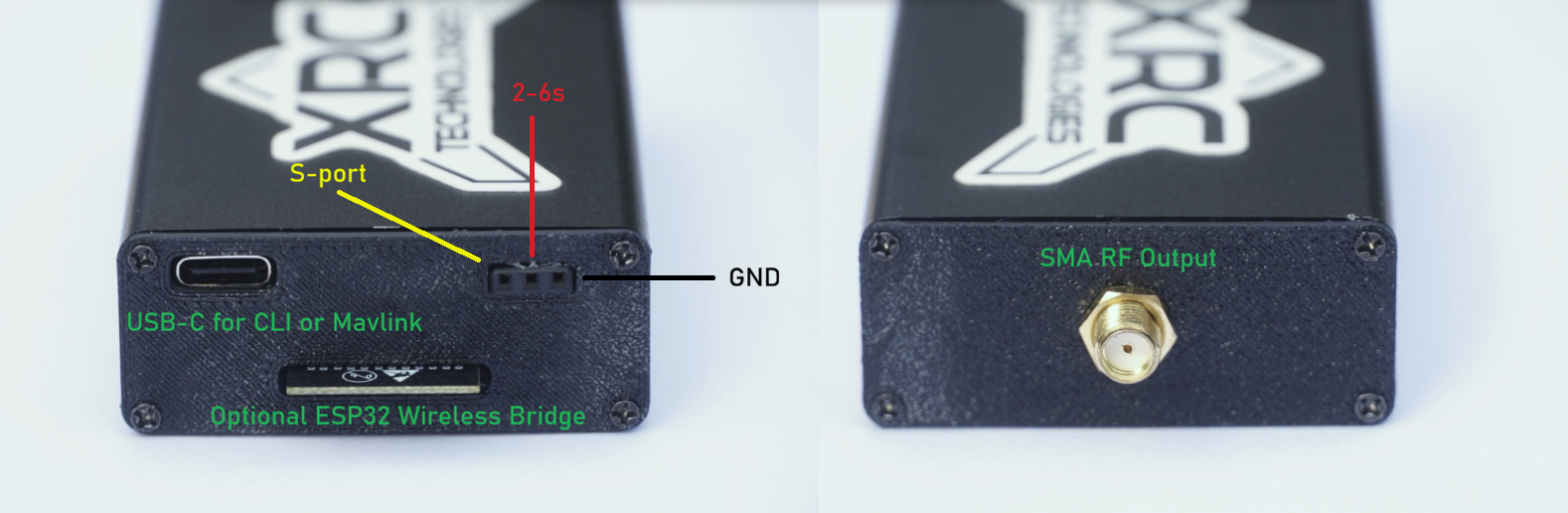 - Built-in serial-USB on Tx module for ground station telemetry (USB-C)